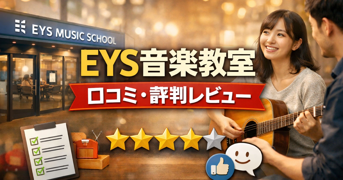 ギター教室を探していると、必ず目にするEYS音楽教室。「楽器無料プレゼント」や「大人の初心者歓迎」といった独自のサービスが特徴ですが、実際の口コミや評判はどうなのでしょうか?